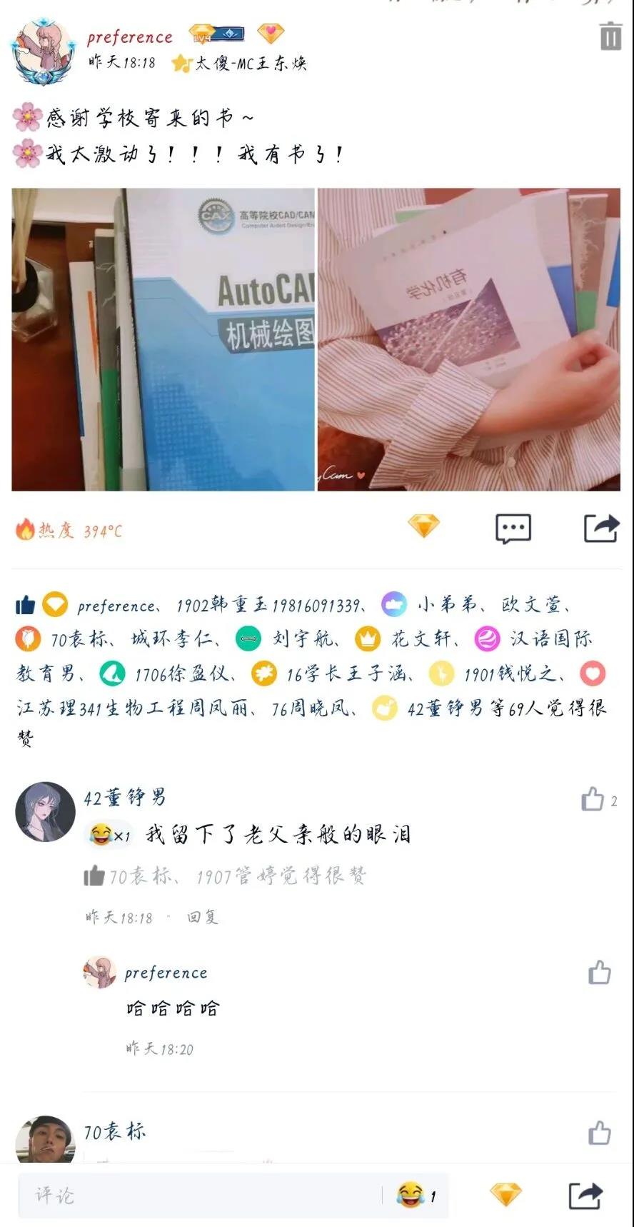 今日,淮師同學紛紛在朋友圈里花式“曬書”“隔空不隔愛,溫暖送到家”