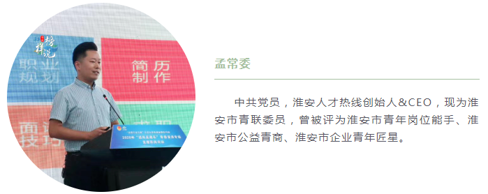 孟常委畢業(yè)于淮安的一所普通專科學(xué)校,當(dāng)年和很多同學(xué)一樣,畢業(yè)后面臨著同樣一個(gè)問題——就業(yè)難。他做過飯店服務(wù)員,當(dāng)過超市理貨工,在探尋自己職業(yè)方向上費(fèi)盡了心思、吃盡了苦頭。工作的時(shí)候他一直在思索,現(xiàn)在淮安每年那么多畢業(yè)生,畢業(yè)后第一個(gè)要面對(duì)的問題就是就業(yè),如何能夠更好地幫助他們解決這一問題?于是,孟常委有了創(chuàng)辦人才公司的念想。2012年,孟常委覺得時(shí)機(jī)成熟,迅速成立了淮安贏夏人才公司,致力于讓更多的人才“未出校門、不出家門”就能在淮安找到好工作、擁有好生活。公司創(chuàng)立之初,由于需要到一線拜訪企業(yè)、收集崗位信息,孟常委半年騎壞了2輛自行車,人也瘦了一圈。最終,自己的辛苦換來了事業(yè)上的甘甜,孟常委的人力資源事業(yè)新局面不斷被打開,這也更加堅(jiān)定了他要做好淮安一線“人才紅娘”的決心。