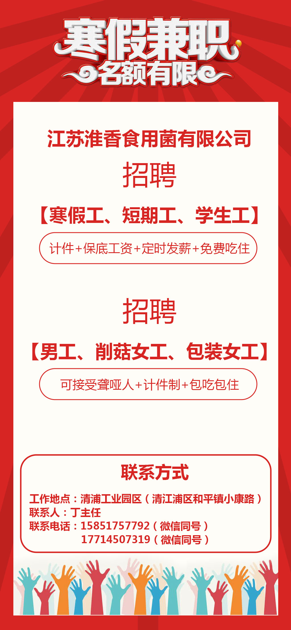 淮香食用菌招聘寒假工、短期工、學生工公告【包吃住,月薪可達5000元】