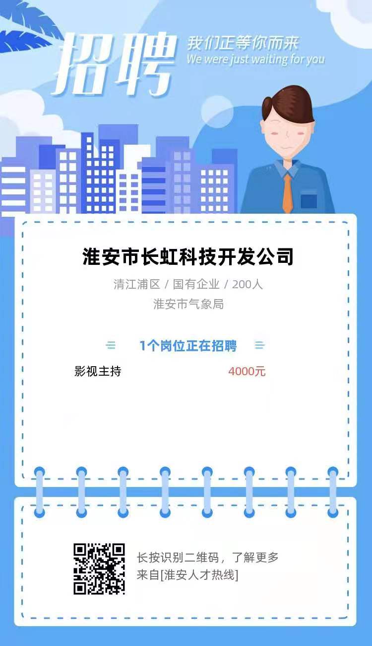 淮安市長虹科技開發(fā)有限公司是淮安市氣象局下屬國有控股企業(yè),因工作需要,決定公開招聘1名工作人員,現(xiàn)將有關(guān)事項公告如下: